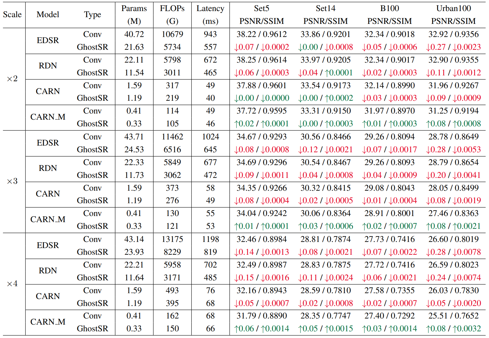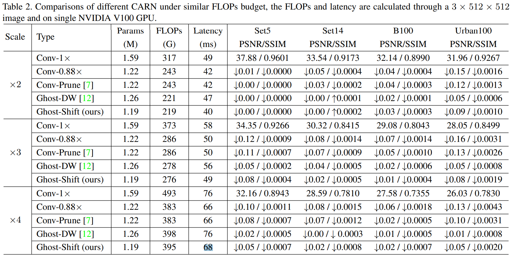 - EDSR x2: Params, FLOPS, Latency 1/2 without performance degradation